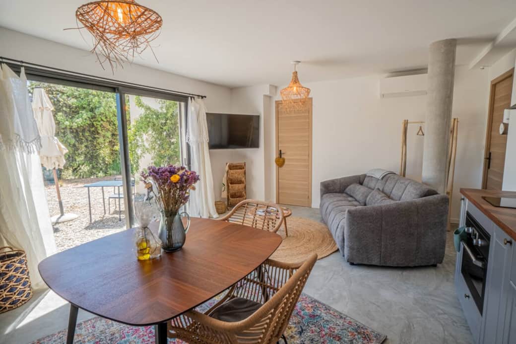 Conçu pour accueillir confortablement 2 adultes, l'intérieur a été décoré avec un soin tout particulier pour créer une atmosphère à la fois élégante et chaleureuse. Le véritable atout de cette propriété réside dans son extérieur : vous aurez accès à une magnifique piscine à débordement partagée, véritable balcon sur la nature, parfaite pour se rafraîchir en admirant la vue. Un jardin paisible et un parking privé sont également à votre entière disposition.